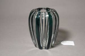 Frankrike. Klart glas med grönt överfång. Signerad Baccarat. Höjd 15,5 cm. Smärre slitage, något mindre stötmärke.
