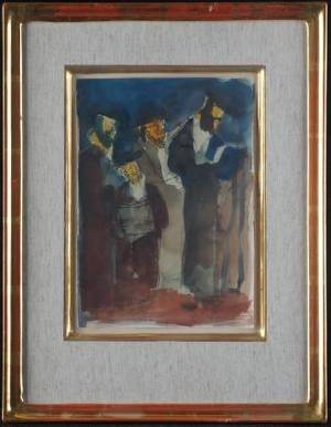 Motiv med bland annat rabbiner. Fyra gouacher. Tre med signatur. 25,5x18 cm, 21x21 cm, 16,5x24,5 cm, 15x20 cm.