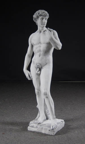 Haveskulptur af frostsikret støbt stenmateriale i form af Adam. H. 120 cm. Vægt: 64 kg. Obs: skal læsses på egen hånd
