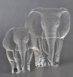 Glasskulpturer. Två st. Elefaneter. Höjd 15-21cm
