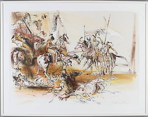Konstnär född: 1941 Hästar i strid. Signerad: Bo Åke Adamsson Mått på duk: 64 x 60 cm Mått inklusive ram: 68 x 64 cm Konditionsrapport: Läs mer...