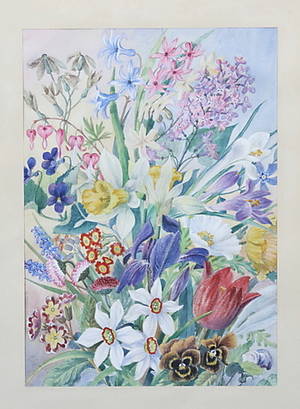 Avslutade auktioner liknande OKÄND KONSTNÄR. Blomsterbukett. Akvarell. Otydligt signerad och daterad.