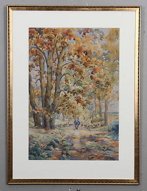 Akvarell, Oidentifierad konstnär. Jaktmotiv. Ej s...