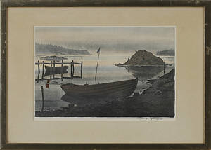 Reinhold Ljunggren, litografi, 'Motiv från Trosa'...