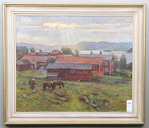 ELSA MOBERGER, Elsa Augusta född Schultz (1879-1978): Landskap med gård, signerad E Schultz-Moberger, olja på duk, ca 33x46 cm. 807566. Läs mer...