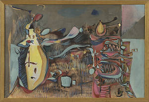 SVEN-ERIK JOHANSSON (1925-2020): Surealistisk komposition, olja på pannå, signerad och daterad 1969, 30 x 41,5 cm. . 916205. Läs mer...