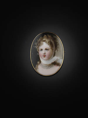 Avslutade auktioner liknande BROSCH, 18 kt guld med miniatyrporträtt (små repor).