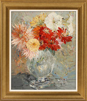 Hugo Öfverström (1900-1973), Sverige. Fiskeläge. Signerad. Olja på duk, 65x90 cm, yttermått inklusive ram: 79x104 cm. Hugo Öfverström, svensk målare född i Kungälv 1900, död Läs mer...