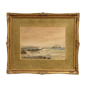 Olja på pannå, "In the Irish channel". Signerad. Mindre färgbortfall, ram med dekorbortfall. (36x59) Läs mer...