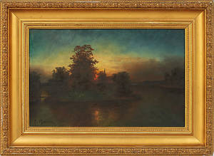 Carl Hallström, Skymningslandskap Signerad C. Hallström. Duk 97 x 52 cm. Smärre skador. Läs mer...