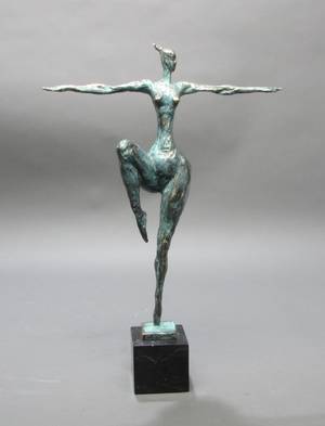 Skulptur af patineret bronze i form af kvinde i positur, stående på sort marmorsokkel. H. 60, L. 35 cm, ca. vægt 7,7 kg. Nyproducerede varer Läs mer...