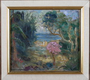 Astri Ekengren-Larsson (Sverige, 1898-1990), olja på pannå, signerad, daterad 1957, mått inklusive ram ca 52 x 47 cm, ram med fläckar. Läs mer...