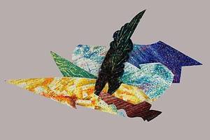 Geb. 1947. Mosaik auf Holzplatte und Trägerkonstruktion, seitlich in Mosaik sig. Linossi. Abstrakte Komposition, abstrahierte Landschaftsdarstellung in Blau, Gelb, Grün, Lila und Weiß. Maße: 230 x 126 x 16 cm.