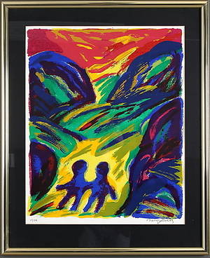 Lasse Åberg (f. 1940), Sverige. Signerad, numrerad 9/190. Färglitografi, bildmått: 54x23 cm, yttermått inklusive ram: 72x42 cm. Lasse Åberg, född 1940 i Hofors, svensk grafisk Läs mer...