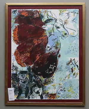 Igge Karlsson (1932-2009), Sverige. Häst och blomster. EA-upplaga (Épreuve d’artiste). Signerad och daterad 1989. Färglitografi, bildmått: 62x46 cm, yttermått inklusive ram: 71x51 cm. Igge Karlsson, Läs mer...