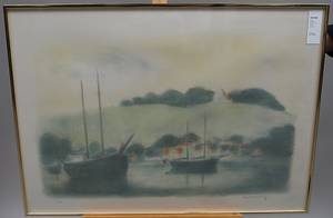Gustav Rudberg, litografi, provtryck, a tergo titulerad "Skuta vid kaj, Hven", signerad, mått med ram ca 40 x 51 cm Läs mer...