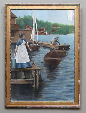 Oidentifierad konstnär. Signerad, blandteknik, inköpet, 1978,14x32 cm, yttermått inklusive ram: 38x55 cm. Läs mer...