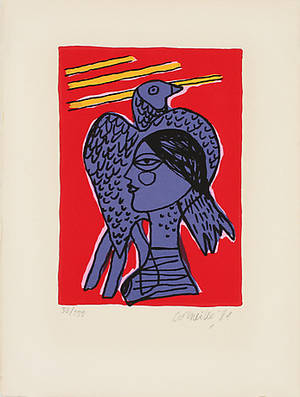 Corneille (1922-2010), Belgien. Signerad, numrerad 90/200, daterad -90, kvinna & fågel. Färglitografi, bildmått: 24x32 cm, yttermått inklusive ram: 50x56 cm. Corneile van Beverloo, Corneille, född Läs mer...