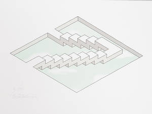 OSCAR REUTERSVÄRD (1915-2002): Omöjlig figur, signerad Oscar Reutersvärd, akvarell och tusch, arches papper. bladmått ca 51 x 67 cm. Ej ramad. Enstaka fläck. Mjuka veck, Läs mer...