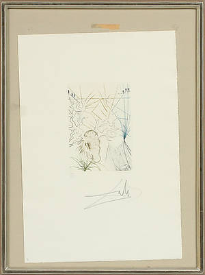 SALVADOR DALI (1904-1989): Song of Songs Solomon: The Beloved Feeds Among the Lilies, 1971, signerad och numrerad XXXIV/L, färgetsning på japanpapper, bladstorlek 66,5x51,5 cm, bildmått Läs mer...