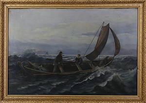 Avslutade auktioner liknande OIDENTIFIERAD KONSTNÄR. Fiskare i segelbåt. Olja på duk. Signerad A Venner.