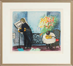 Avslutade auktioner liknande LENNART JIRLOW. Violinist, färglitografi, signerad och numrerad, 231/310.
