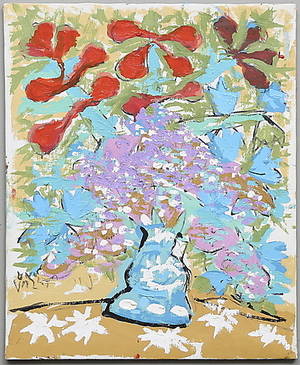 Avslutade auktioner liknande UNO VALLMAN. olja på duk, blomstermotiv, signerad.