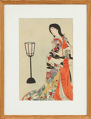 Tre japanska träsnitt i mapp. Bildstorlek från 28 x 19,4 till 38,5 x 28,5 cm. Läs mer...