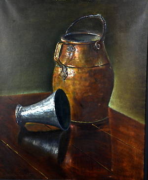 Stilleben med kanna och vas. Sign och daterad -65, 75x60 cm.