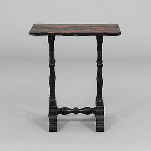 Svartmålat. Skiva med dekor av sjölandskap. Längd 67, bredd 48, höjd 76 cm.