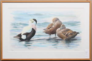 Lars Jonsson (f. 1952), Sverige. Andfåglar. Signerad, numrerad 40/375. Färglitografi. Bladets mått: 42x60 cm, yttermått inklusive ram: 59x76 cm. Lars Jonsson, svensk bildkonstnär född 1952, Läs mer...