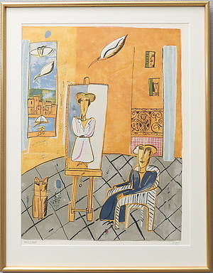 Figurkomposition Madeleine Pyk Född 1934 Signerad: M Pyk Numrerad: 209/250 Mått bildyta: 30 x 23 cm Mått med ram: 49 x 40 cm Konditionsrapport: Inga Läs mer...