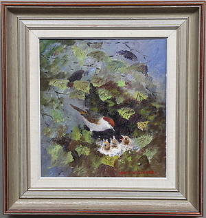 Knut Valinder (1909-1987), Sverige. Fågelungar. Signerad. Olja på duk, 44x62, yttermått inklusive ram: 61x81 cm. Knut Valinder, född 1909 i Göteborg, död 1987, svensk målare. Läs mer...