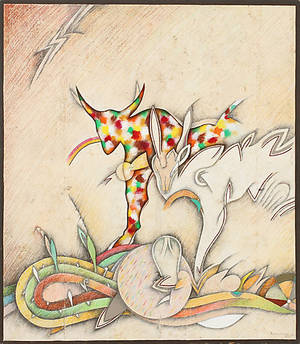 Heitti Polli, Komposition. Sign. -92. Blandteknik på papper. Passepartout 42 x 56 cm. Vågigt papper. Ej examinerad ur ram. Läs mer...