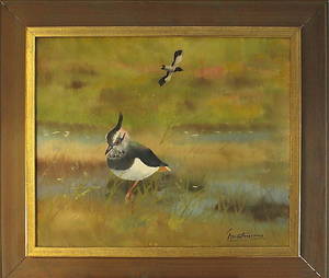 Avslutade auktioner liknande OIDENTIFIERAD KONSTNÄR. olja på duk, tofsvipa, signerad.