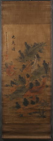 "RULLMÅLNING, koifiskar, Kina, 1800/1900-tal."