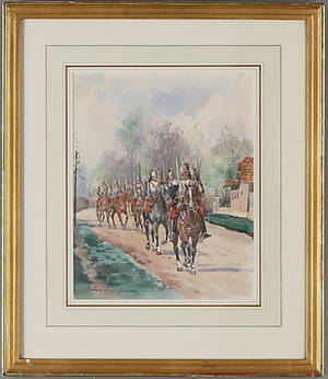Anna Palm de Rosa, Soldater på häst Signerad Anna Palm de Rosa. Akvarell 46,5 x 62,5 cm. Ej examinerad ur ram. Läs mer...