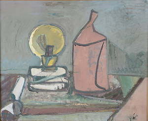 Stilleben med oljelampa. Signerad. 55x64 cm.