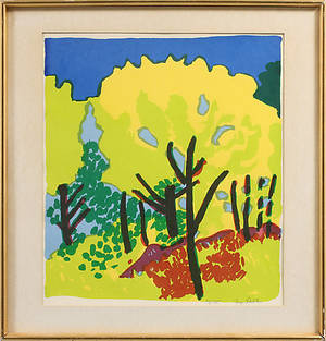 INGE SCHIÖLER. Landskap med träd, färglitografi, signerad och numrerad 96/195.