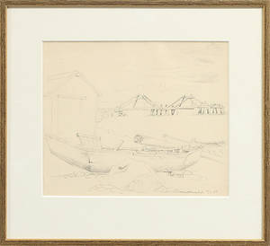 Avslutade auktioner liknande AXEL OLSON. Kustbild, "Haverdal", blyerts, signerad och daterad 18/6-37.