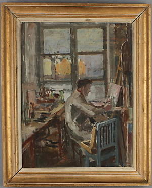 SVEN OLOF ROSÉN. I ateljén, olja på pannå, signerad och daterad 44.