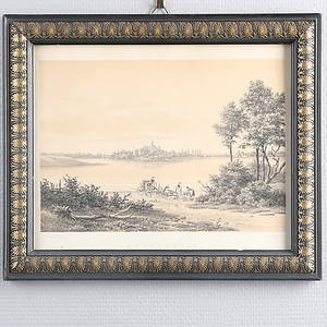 Sign i trycket. 1800/1900-tal. Gulnade, fläckar, mycket slitage på ramar. 29,5x25cm. Läs mer...