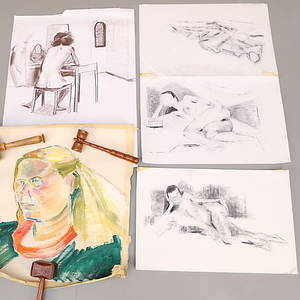 Avslutade auktioner liknande WANJA "NONES" HÅKANSSON. Skisser, 4 st, kroki, blyerts, signerade och osignerade+ olja på duk.