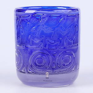 Bengt Edenfalk, vas, glas, "Thalatta", Skruf, signerad. Cylinderformad vas med dekor av inneslutna luftbubblor. Etikettmärkt samt signerad Edenfalk Skruf Thalatta 1. Höjd 17,5 cm. Repor. Läs mer...
