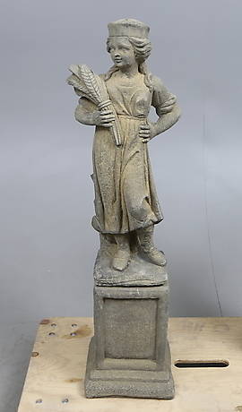 Stenmassa i form av antikiserande kvinnofigur. Höjd 78 cm. Smärre slitage. Något smutsig. Läs mer...