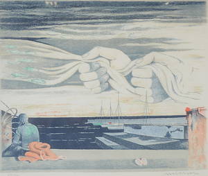 Axel Olson (1899-1986), Sverige. Signerad, numrerad 21/260, kust. Färglitografi, bildmått: 28x58 cm, yttermått inklusive ram: 54x81 cm. Axel Olson, svensk bildkonstnär född 1899, död 1986. Läs mer...