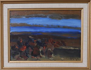 Ivar Morsing (1919-2009), Sverige. Landskap. Signerad, daterad -62. Olja på pannå, 17x38 cm, yttermått inklusive ram: 21x42 cm. Ivar Morsing, svensk målare och grafiker född Läs mer...