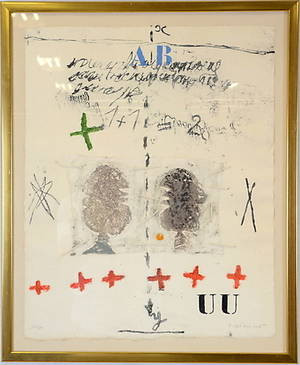 JAMES COIGNARD (Frankrike, 1925-2005): Komposition med skäggig man, färgetsning med carborundum, delvis kolorerad, signerad J. Coignard, numrerad 24/75, bladstorlek ca 66x52 cm. 707483. Läs mer...