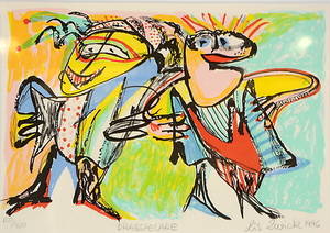 LIS ZWICK (född 1942), "Rendez-vous", signerad Lis Zwick 1988 Vence, numrerad 113/200, färglitografi, motivmått ca 67 x 69,5 cm. 596383. Läs mer...