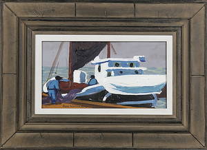 Avslutade auktioner liknande LARS NORRMAN. Båtliv i Spanien, olja på pannå, signerad.